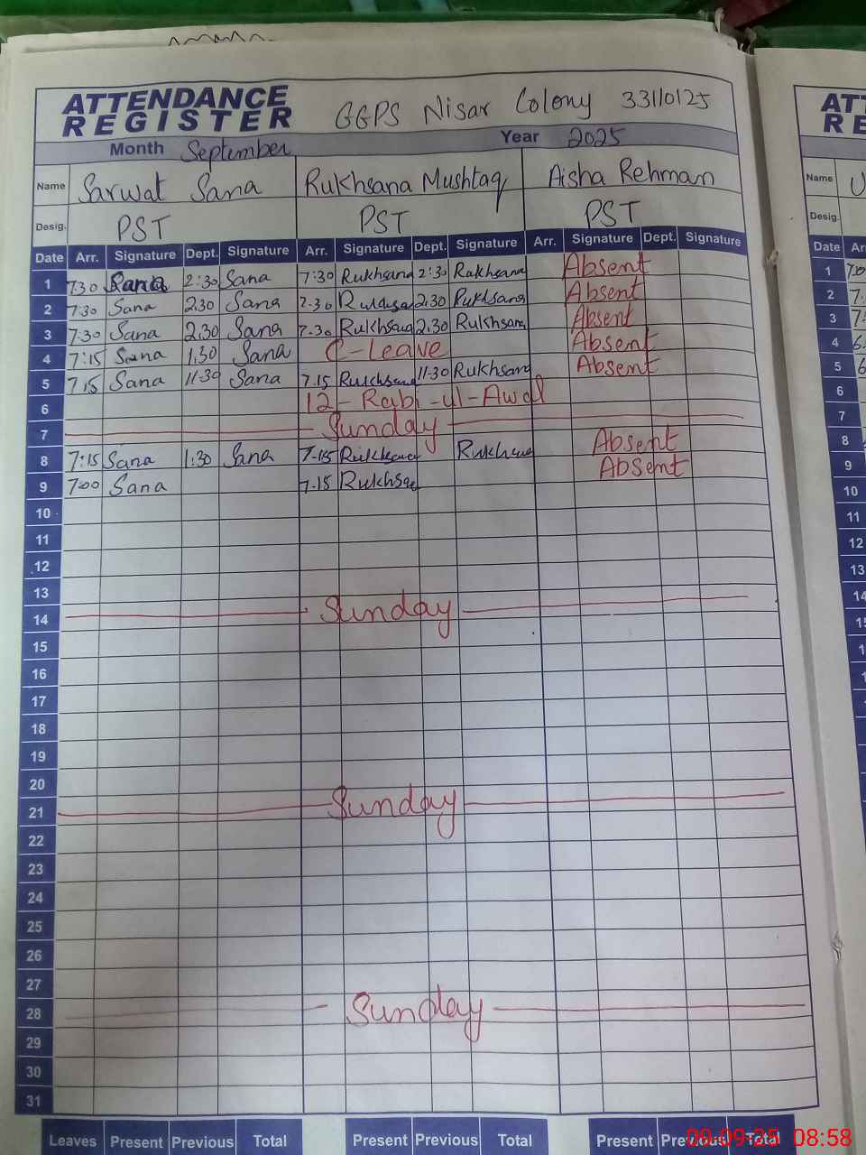 | 33**** | Ai**** Re**** | PST | Regular | 0 | 0 | 0 | 0 | 0 | 0 | 0 | 0 | 0 | Absent (Un-Authorized) |