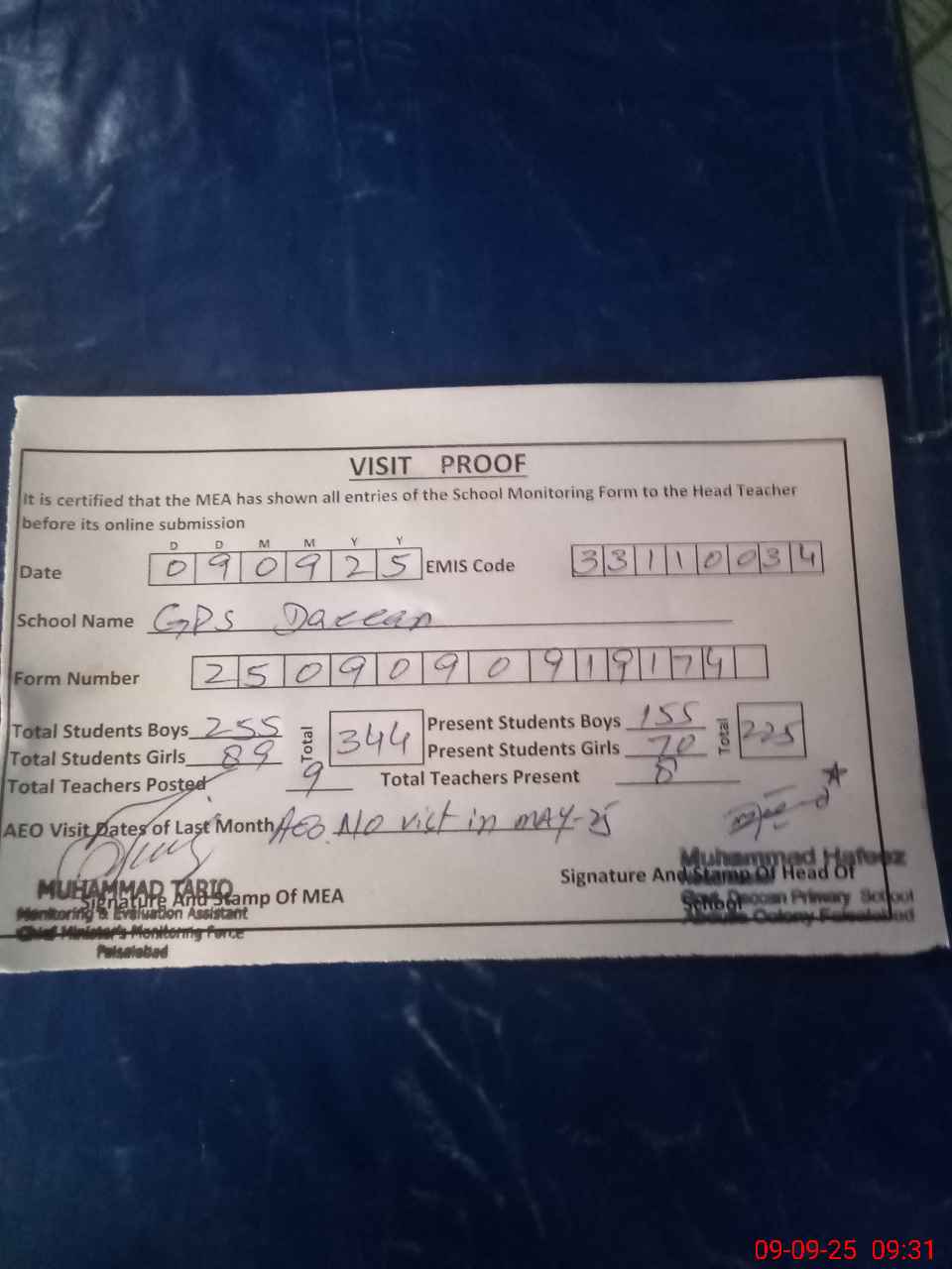 | EMIS Code: 33110034 | Name of School: GPS DACCAN SAMAN ABAD FSD | |||