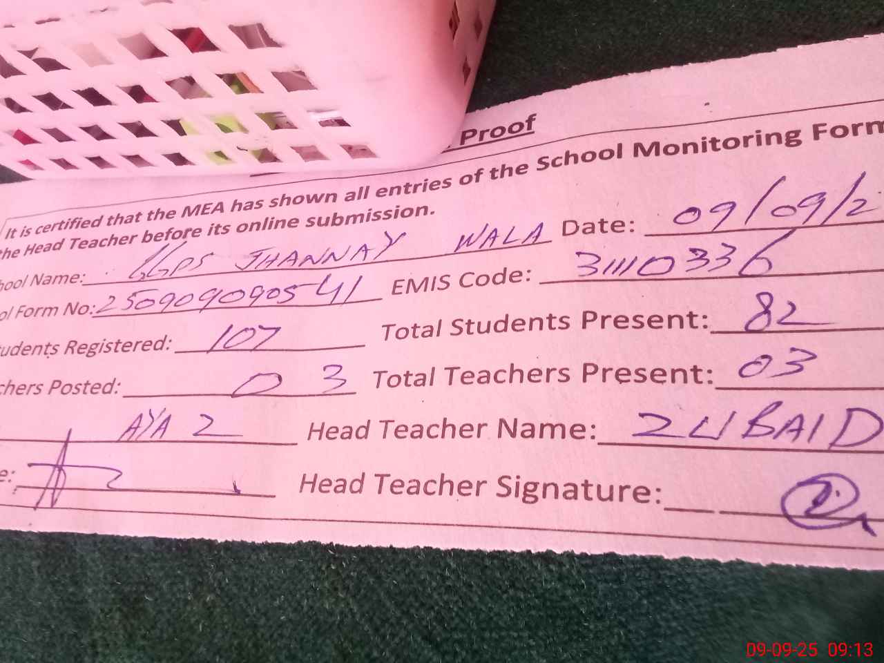 | EMIS Code: 31110336 | Name of School: GGPS JAHANAY WALA | |||