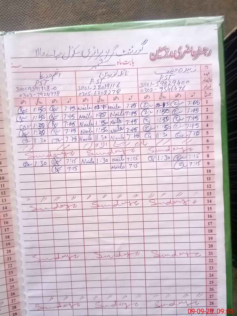 | Name: ZA**** HA**** Designation: (School Headmaster's/Headmistress's) PST Phone/Cell Number: 03**** |