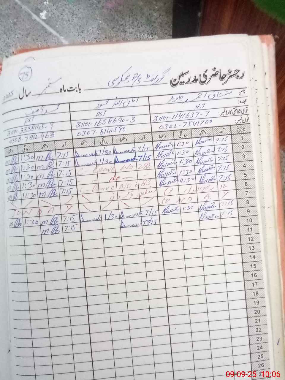 | Name: Mu**** Ah**** Ja**** Designation: (School Headmaster's/Headmistress's) PST Phone/Cell Number: 03**** |