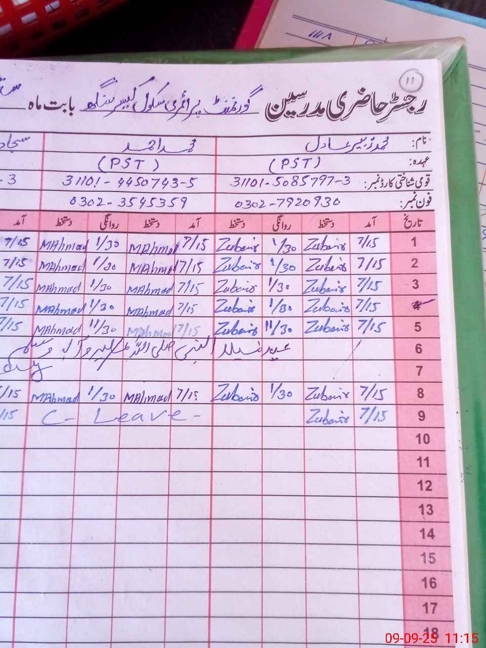 | Name: MO**** ZU**** AD**** Designation: (School Headmaster's/Headmistress's) PST Phone/Cell Number: 03**** |