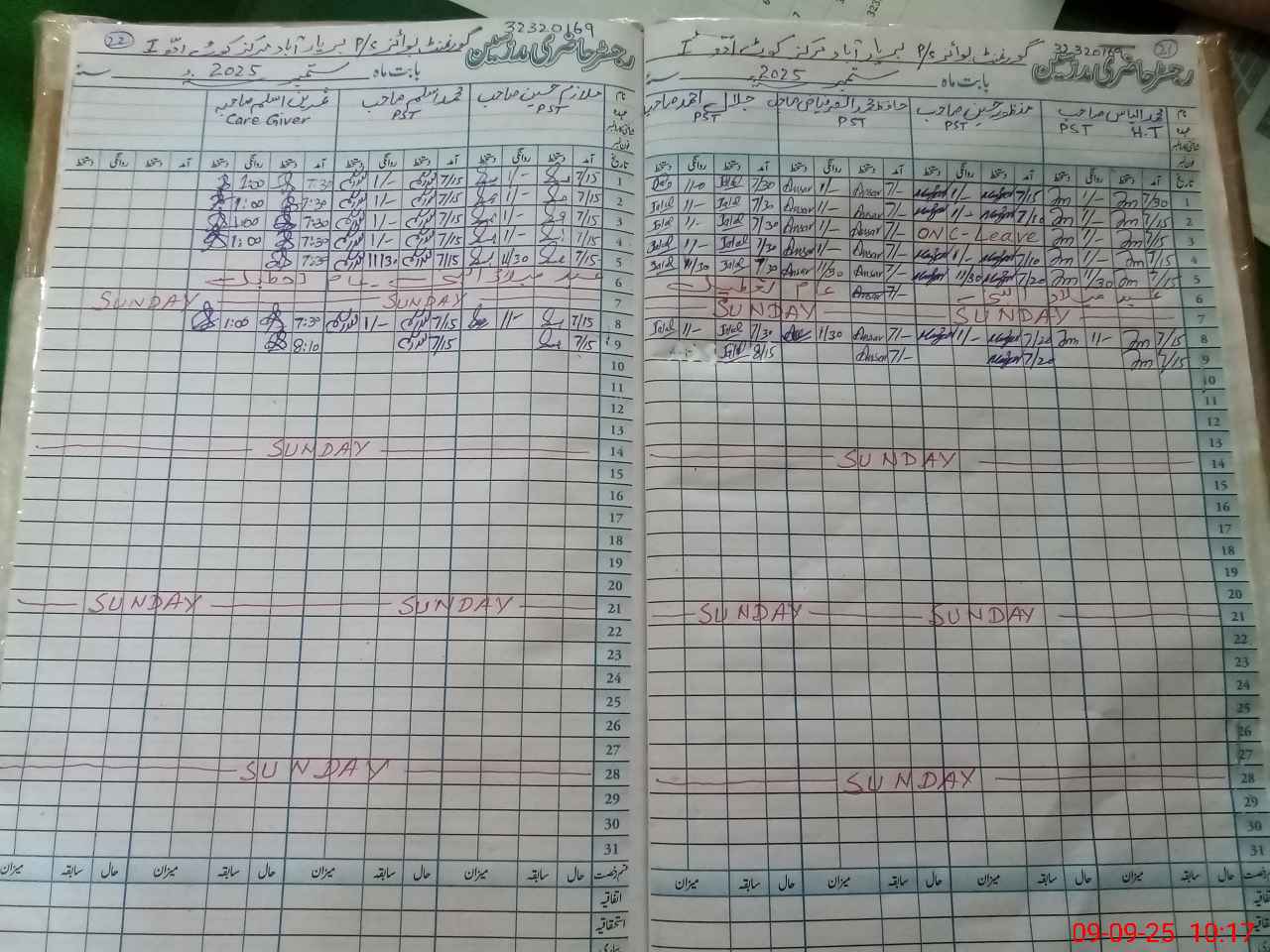 | CNIC | Full Name | Designation | R/C | Absence During Last Calender Month |