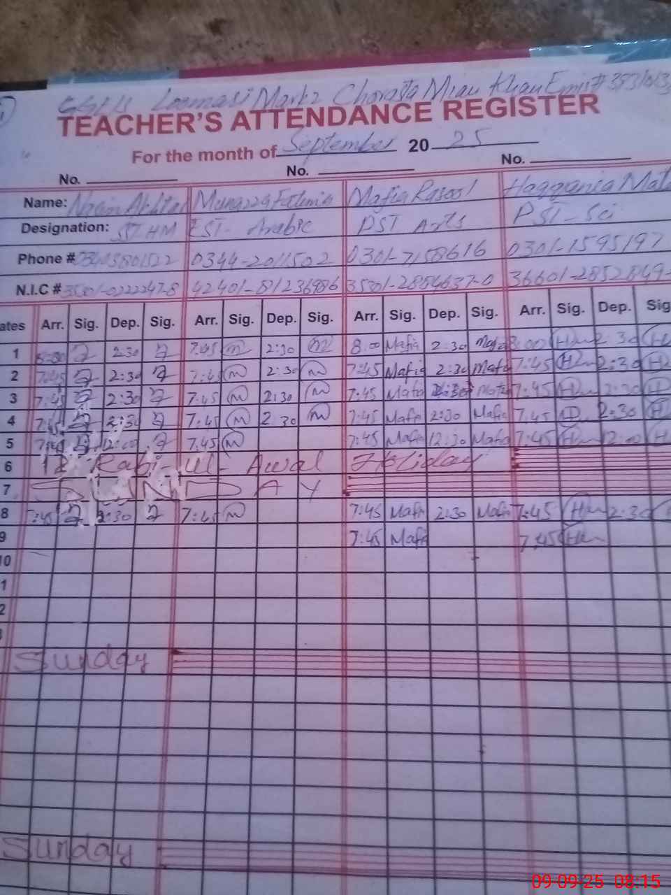 | Name: NA**** AK**** Designation: (School Headmaster's/Headmistress's) SST Phone/Cell Number: 03**** |