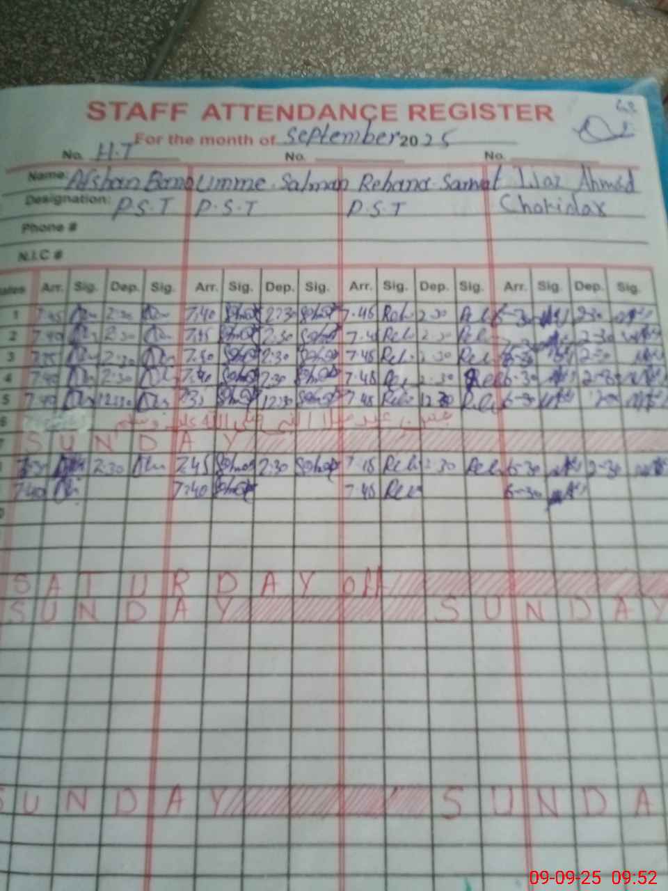 | Name: Af**** Ba**** Designation: (School Headmaster's/Headmistress's) PST Phone/Cell Number: 03**** |