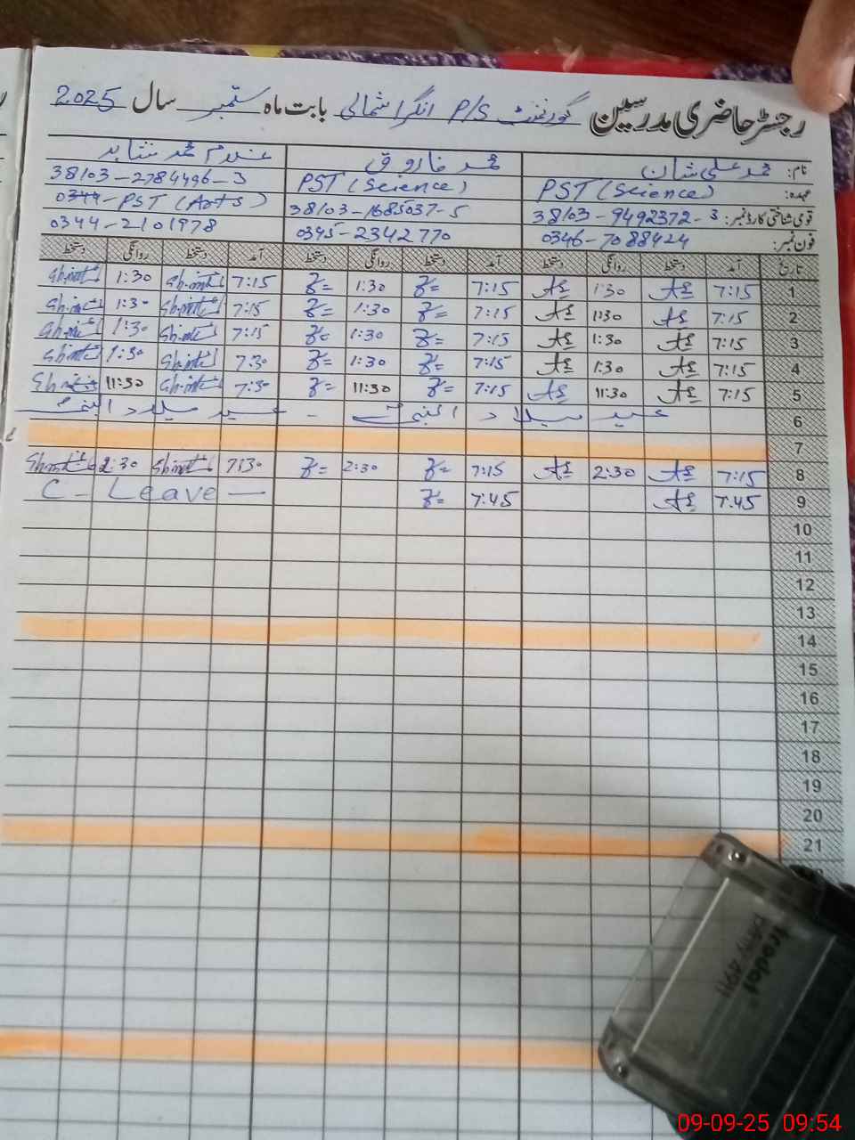 | 38**** | Gh**** Mu**** Sh**** | PST | Regular | 0 | 0 | 0 | 0 | 0 | 0 | 0 | 0 | 0 | Casual |
