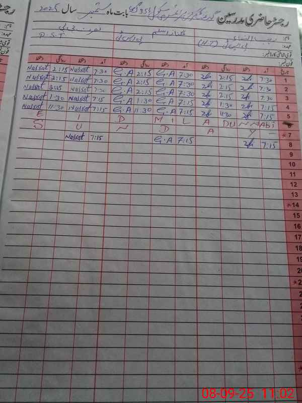 | CNIC | Full Name | Designation | R/C | Absence During Last Calender Month |