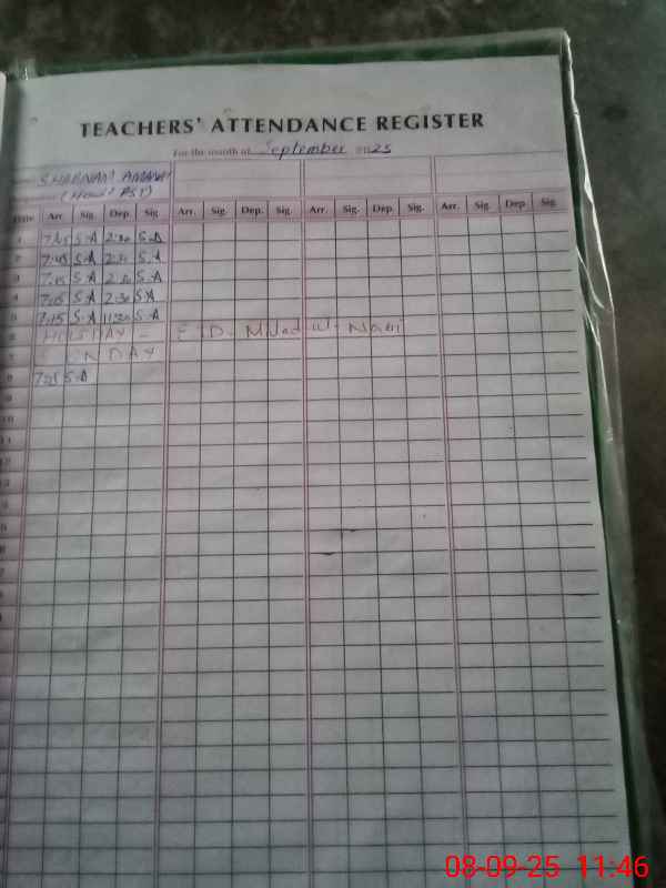 | Name: SH**** AM**** Designation: (School Headmaster's/Headmistress's) PST Phone/Cell Number: 03**** |