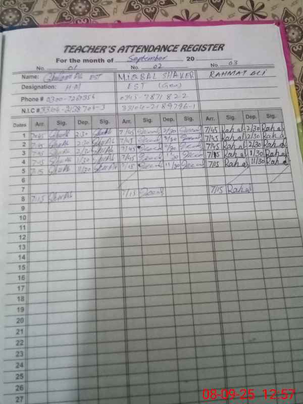 | Name: GH**** AL**** Designation: (School Headmaster's/Headmistress's) SST (GEN) Phone/Cell Number: 03**** |