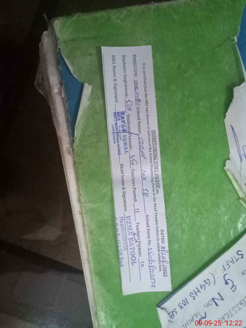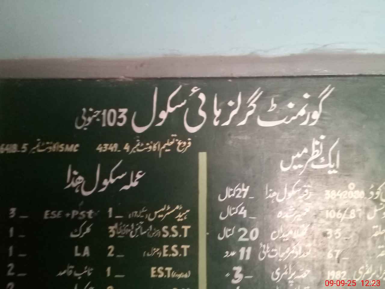 | EMIS Code: 38420080 | Name of School: GGHS CHAK NO.103 SB | |||