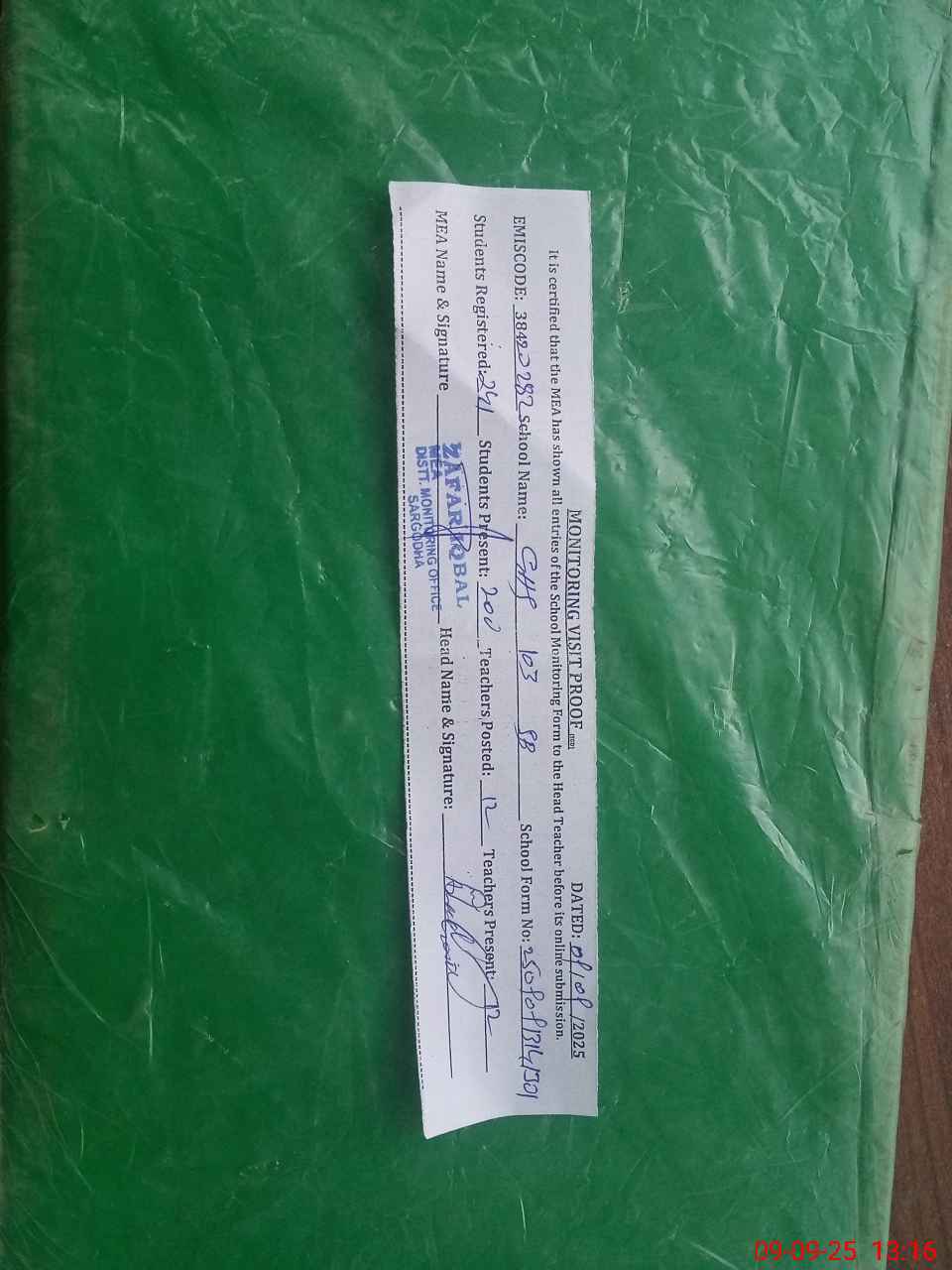 | Certified that this School was Inspected by the Undersigned MEA/DMO Today and the Information Stated Above is as Per Record. | |||||