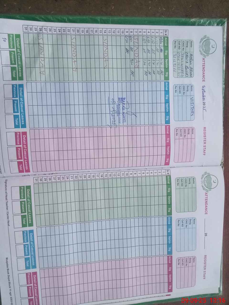 | Name: Sa**** Al**** Designation: (School Headmaster's/Headmistress's) SST (Sci Phone/Cell Number: 03**** |