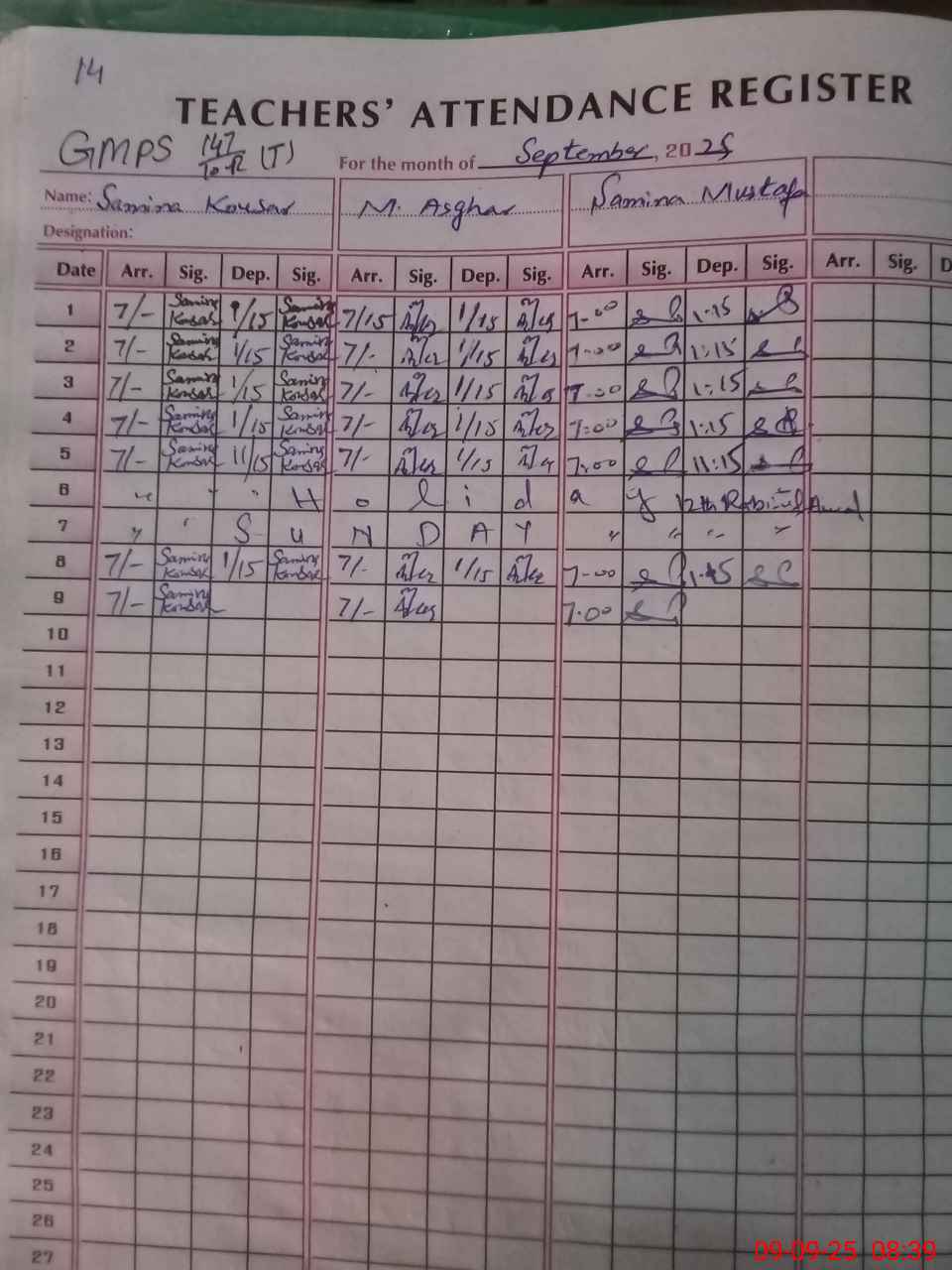 | Monitoring Date: 09-09-2025 | Start Time: 09-09-2025 08:20 AM | End Time: 09-09-2025 09:09 AM | Name of MEA: Is**** Me**** | |