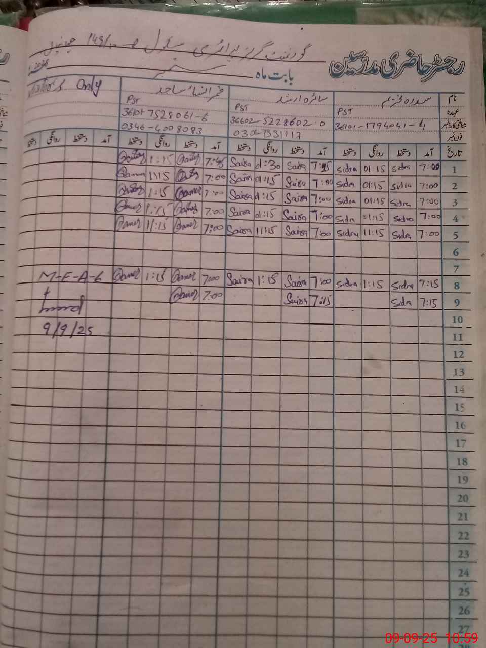 | Name: Qa**** Unni**** Sa**** Designation: (School Headmaster's/Headmistress's) PST Phone/Cell Number: 03**** |