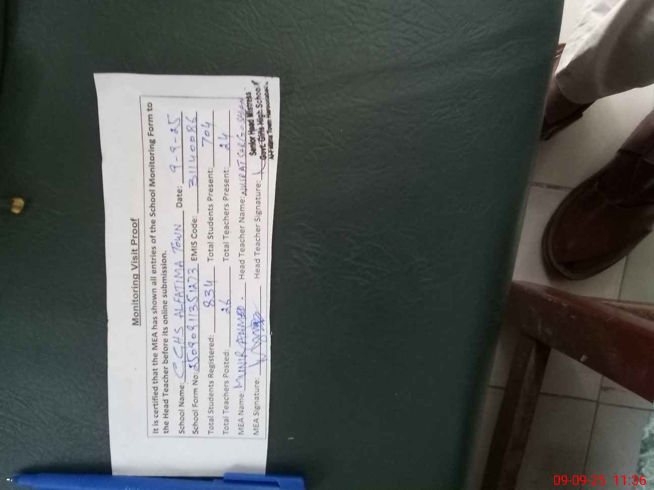 | Attendance Register | Head Teacher | MEA with School | Visit Proof |