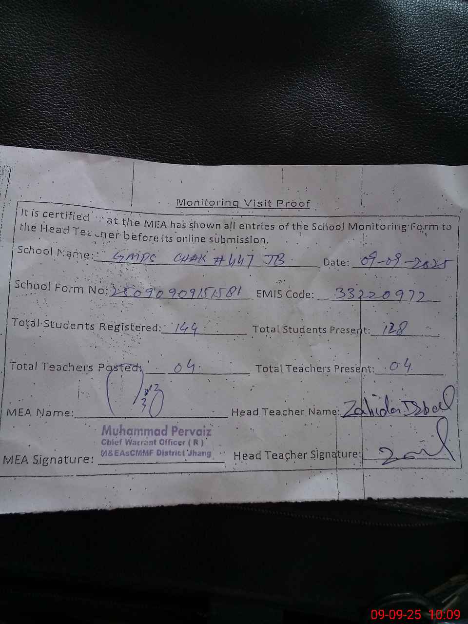 | EMIS Code: 33220972 | Name of School: GMPS CHAK NO 447 JB | |||