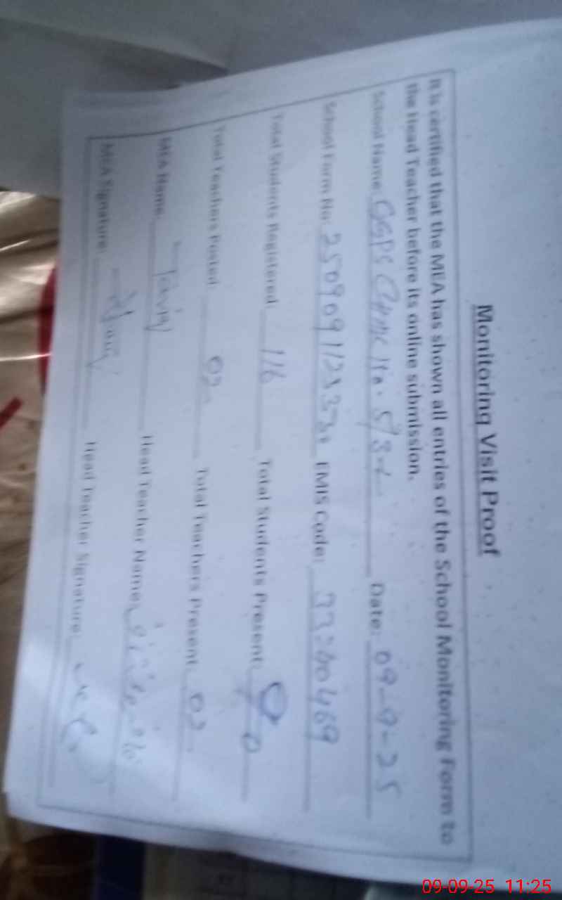 | Attendance Register | Head Teacher | MEA with School | Visit Proof |