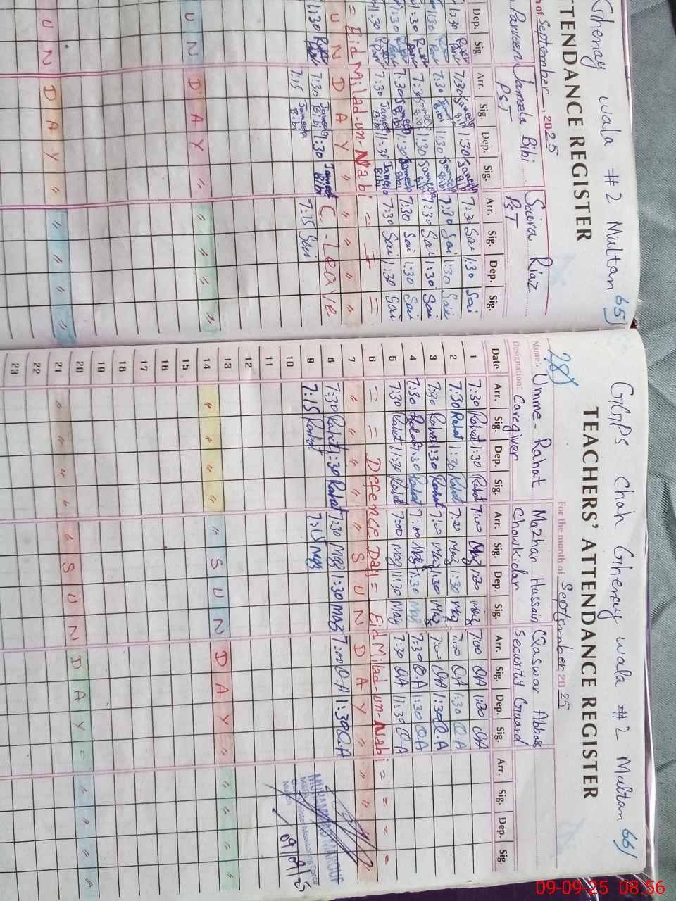 | Remarks (Use Separate Page if Required): Security guard qaswar Abbas absent 01 class room need maintenance | |||||