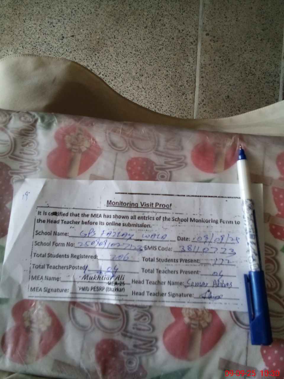 | EMIS Code: 38110773 | Name of School: GPS FAZLAY WALA | |||