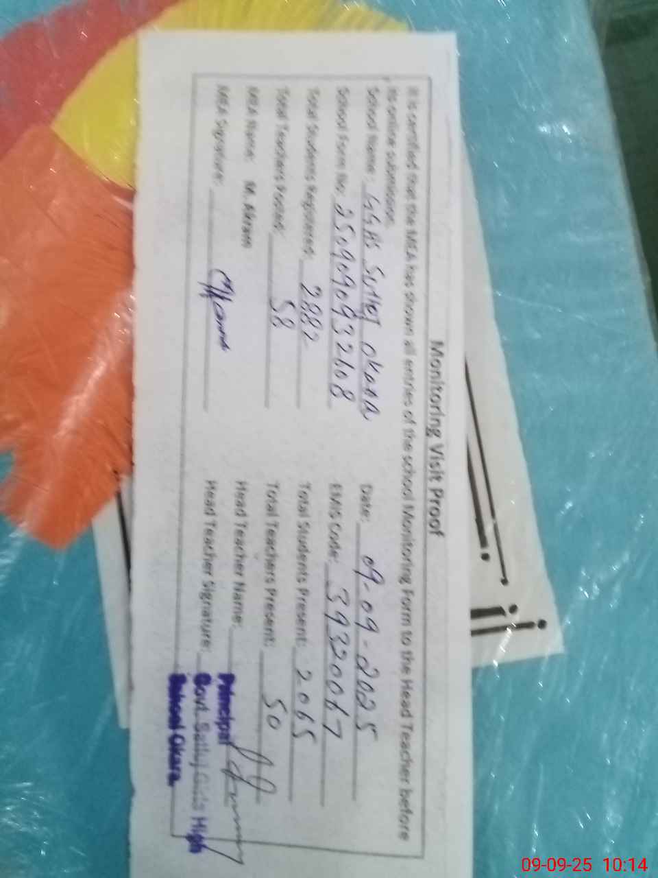 | Attendance Register | Head Teacher | MEA with School | Visit Proof |