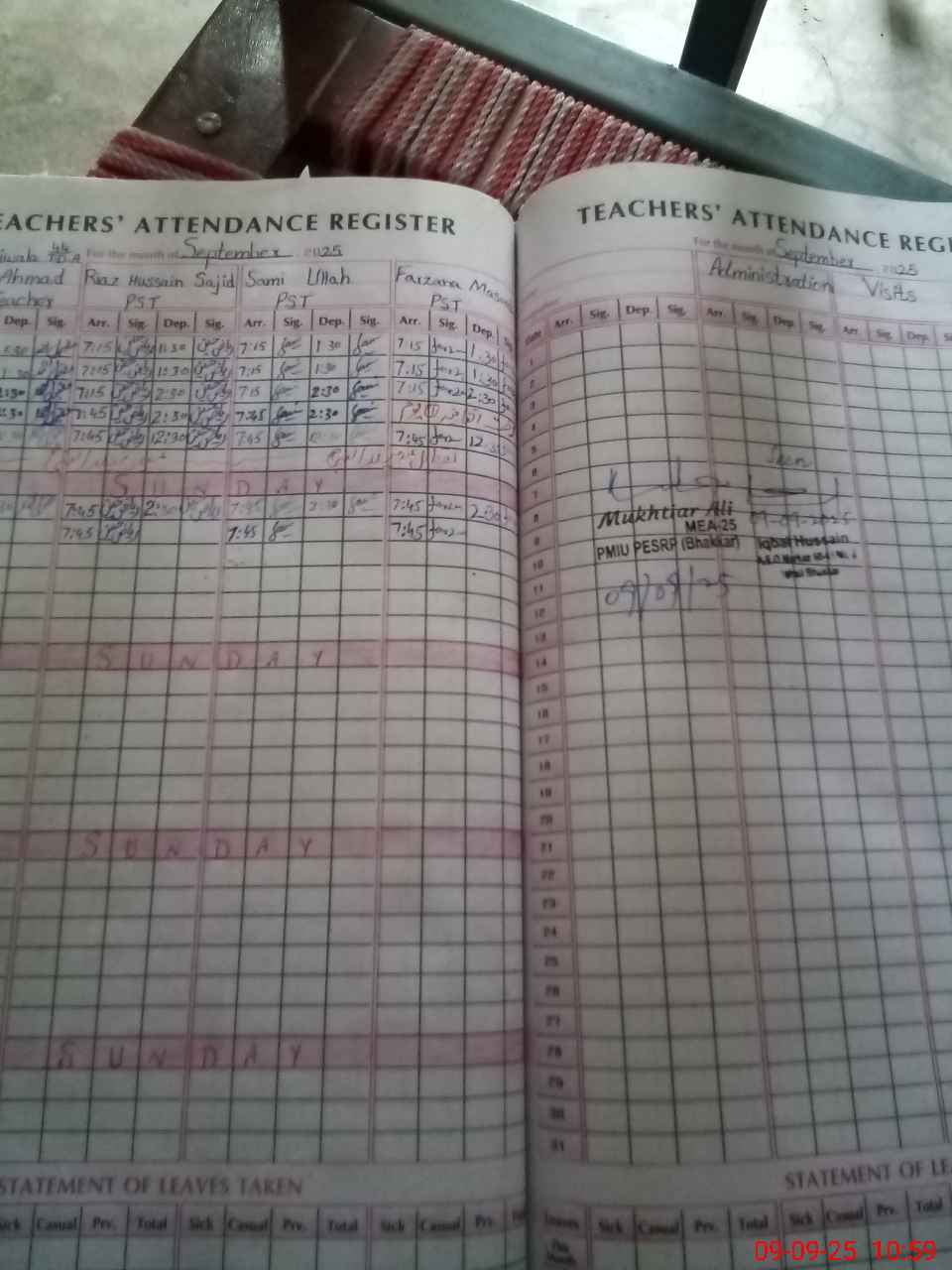 | Monitoring Date: 09-09-2025 | Start Time: 09-09-2025 10:40 AM | End Time: 09-09-2025 11:04 AM | Name of MEA: Mu**** Al**** | |