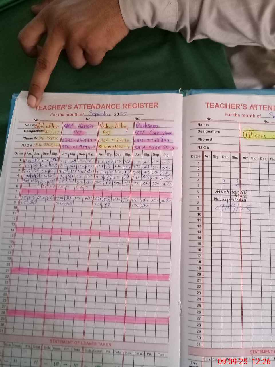 | Name: Sh**** Ja**** Designation: (School Headmaster's/Headmistress's) PST Phone/Cell Number: 03**** |