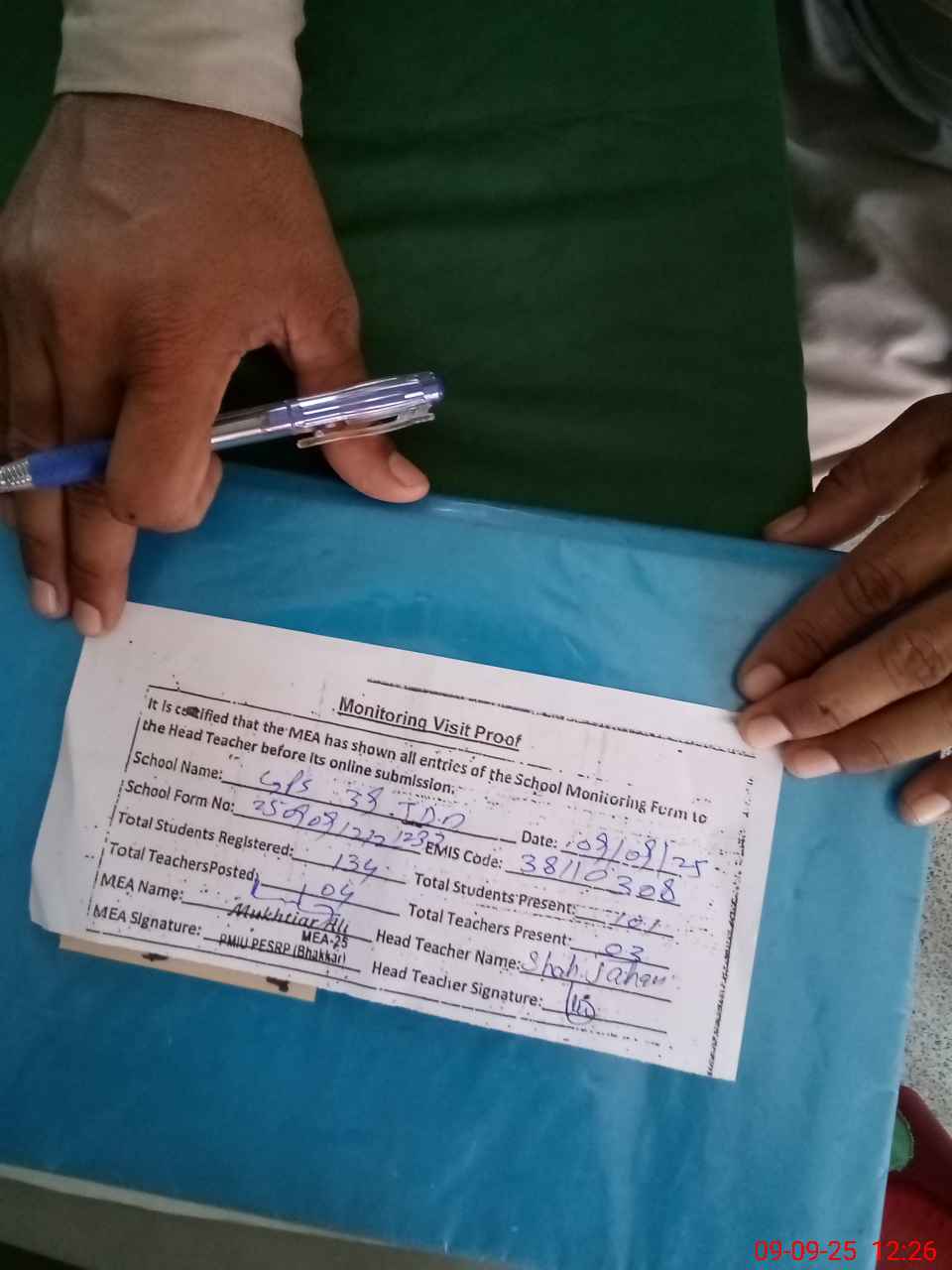 | Attendance Register | Head Teacher | MEA with School | Visit Proof |