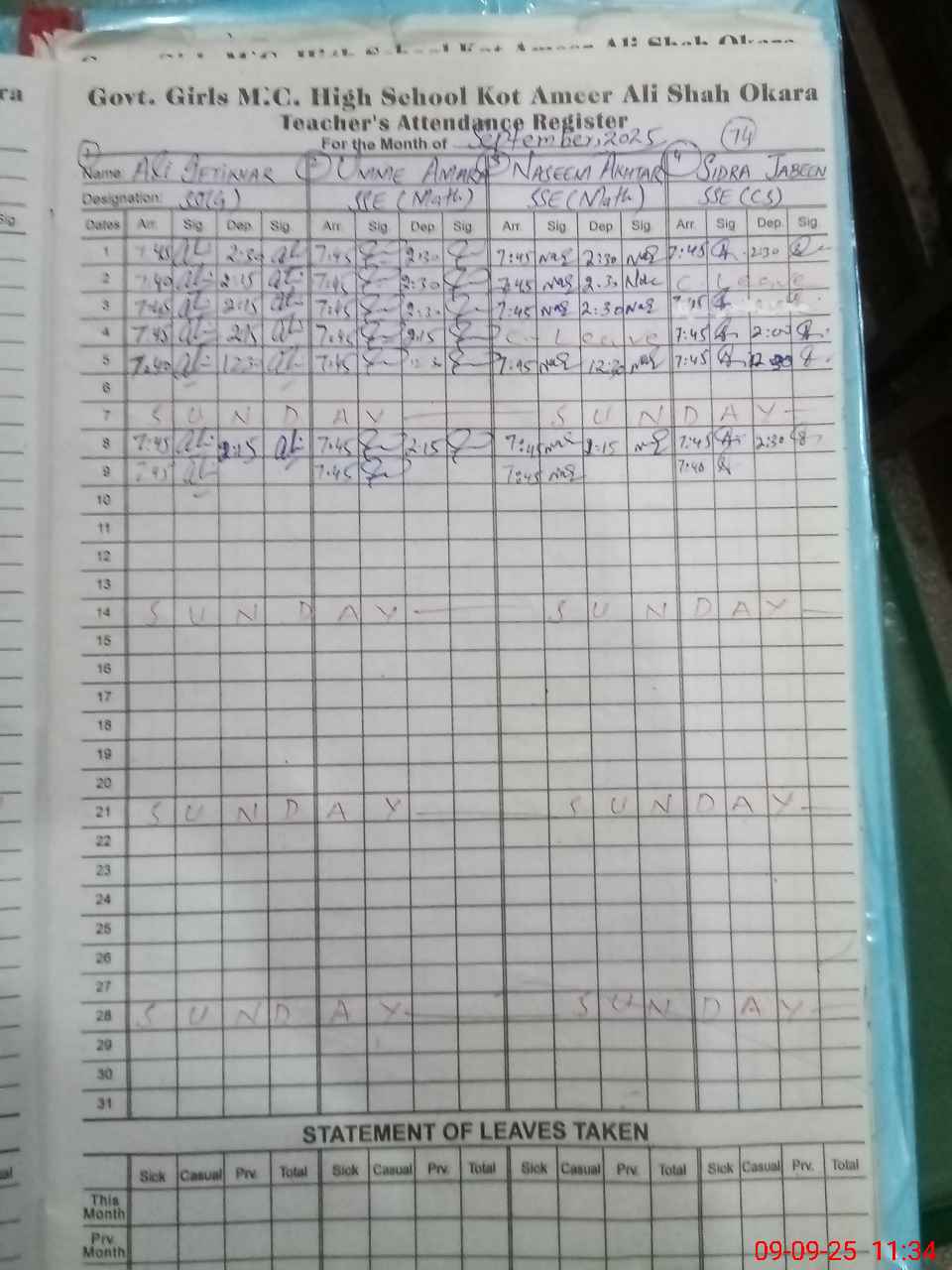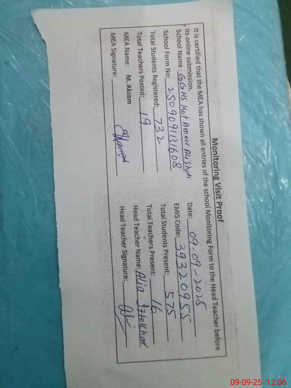 | EMIS Code: 39320955 | Name of School: GGHS MC JUNIOR MODEL KOT AMIR ALI SHAH OKARA | |||