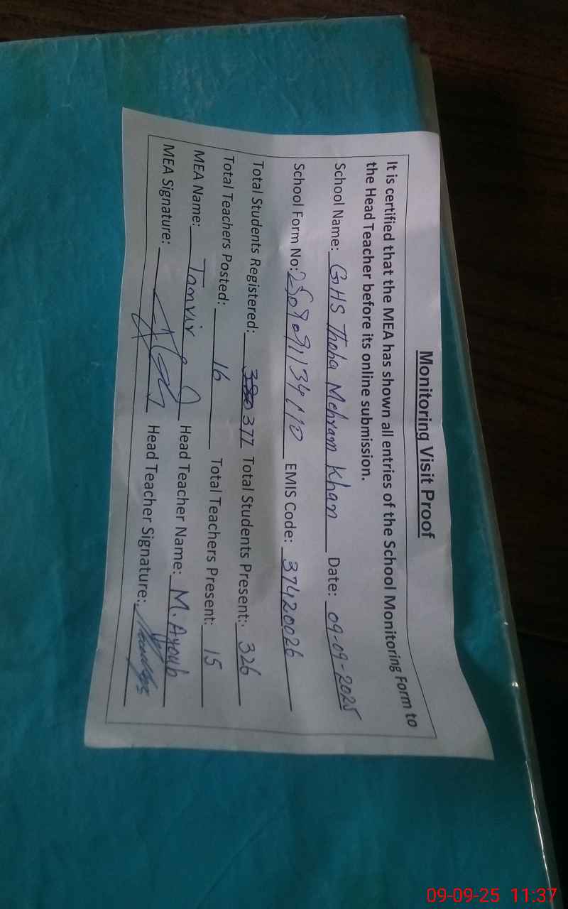 | EMIS Code: 37420026 | Name of School: GHS THOA MEHRAM KHAN | |||