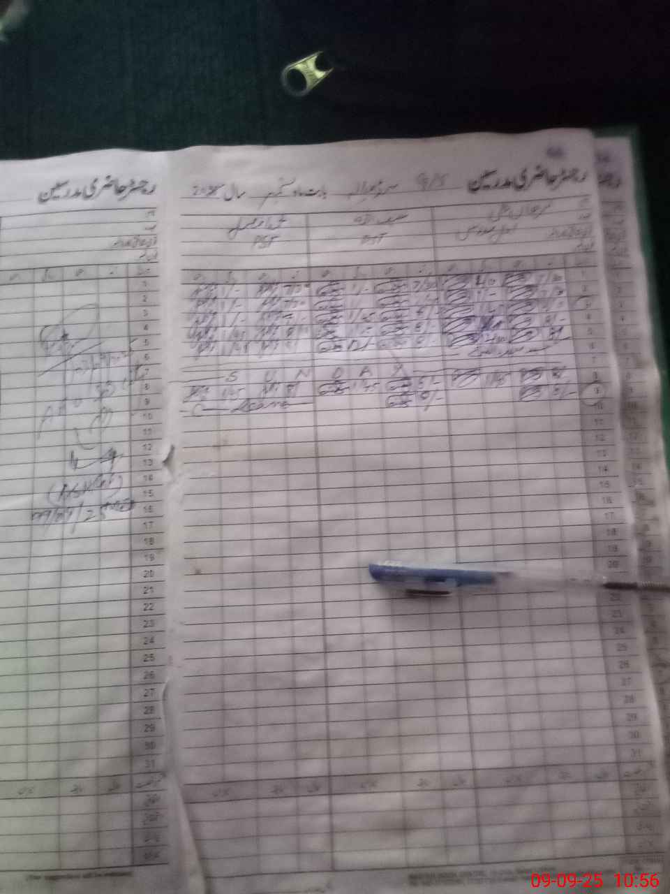 | CNIC | Full Name | Designation | R/C | Absence During Last Calender Month |