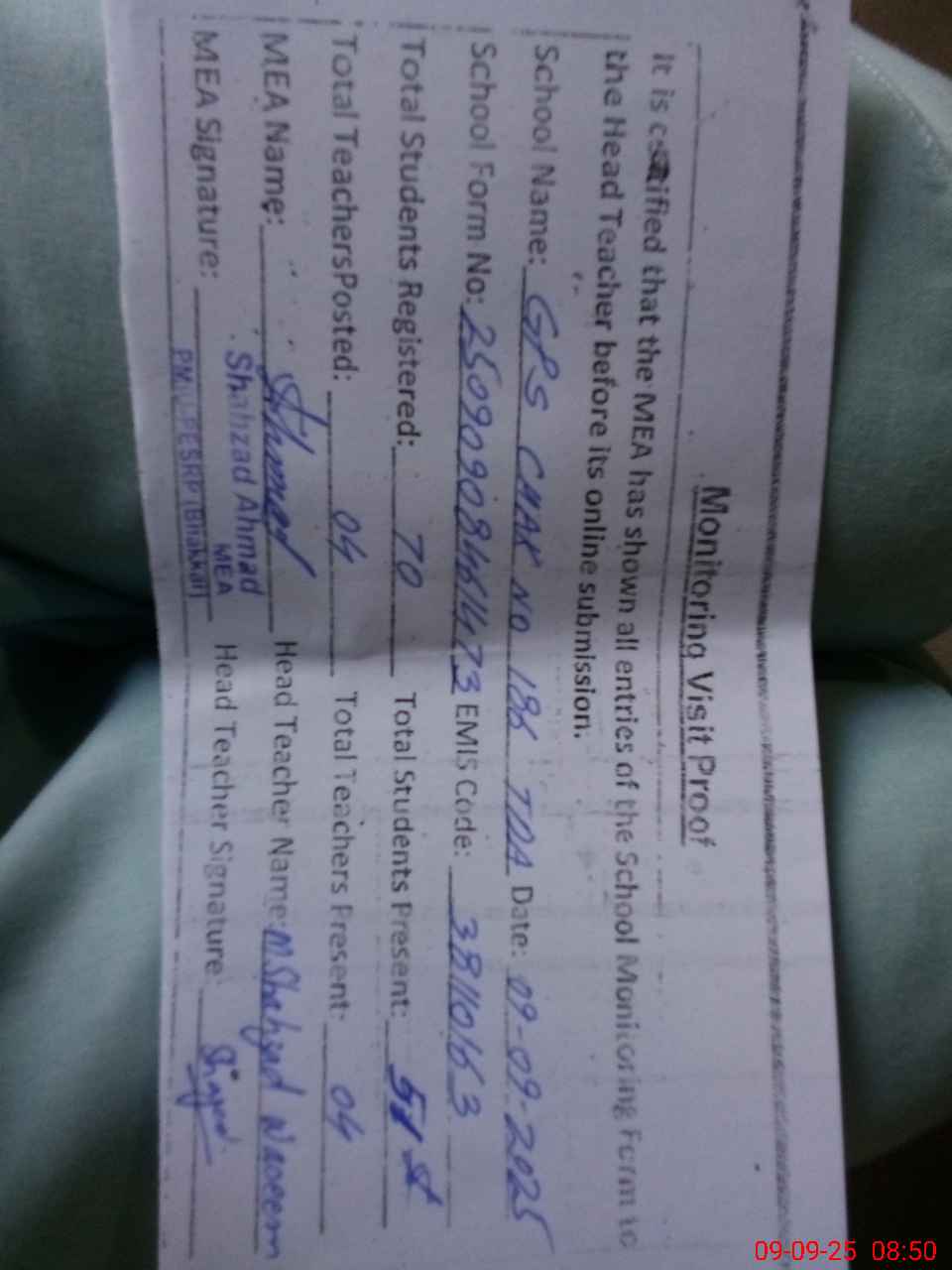| Name: Mu**** Sh**** Wa**** Designation: (School Headmaster's/Headmistress's) PST Phone/Cell Number: 03**** |