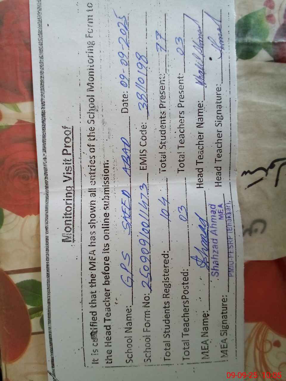 | EMIS Code: 38110198 | Name of School: GPS SAEED ABAD | |||