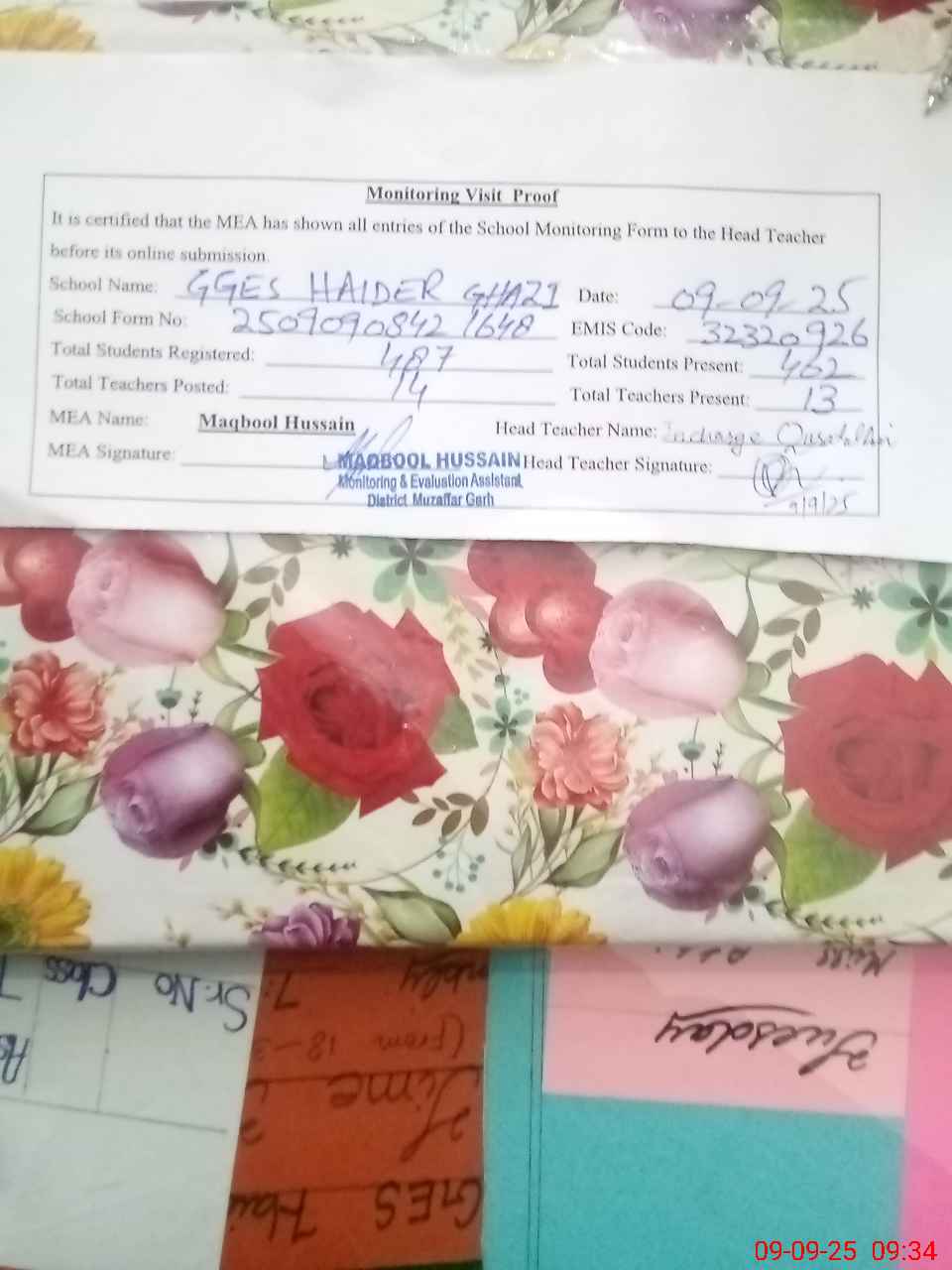 | EMIS Code: 32320926 | Name of School: GGES HAIDER GHAZI | |||