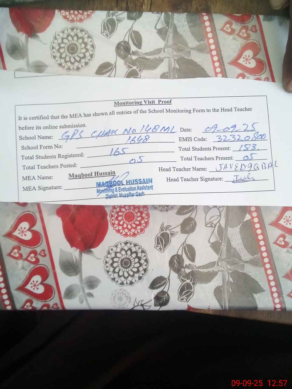 | EMIS Code: 32320800 | Name of School: GPS CHAK NO.148 ML | |||