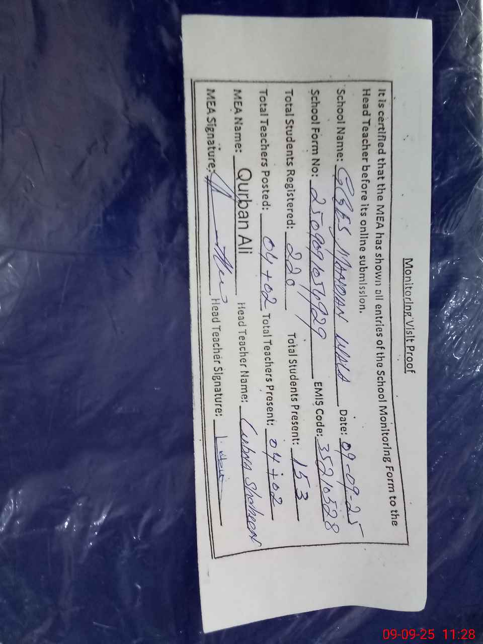 | Certified that this School was Inspected by the Undersigned MEA/DMO Today and the Information Stated Above is as Per Record. | |||||