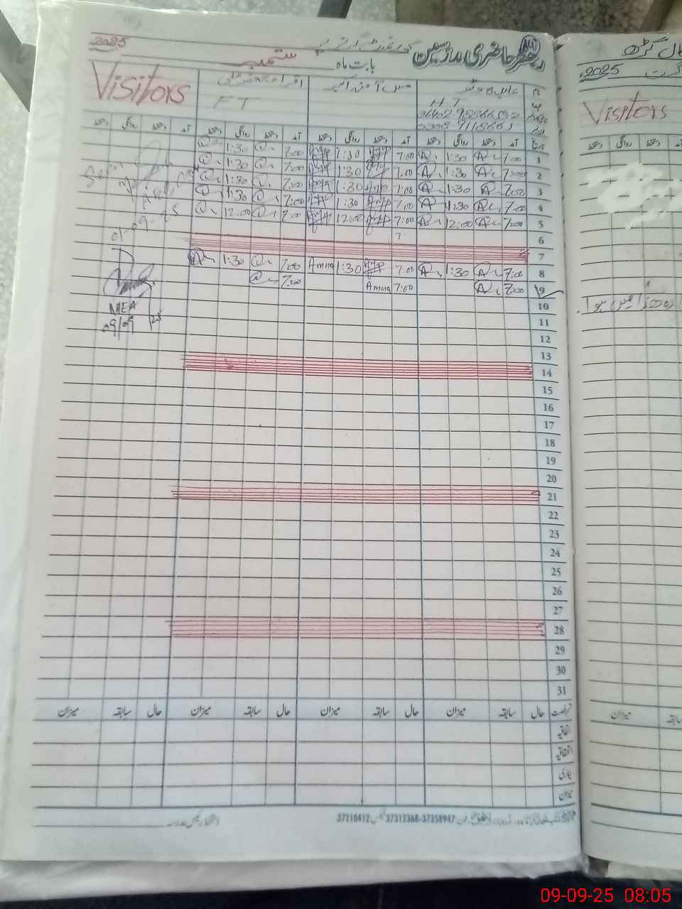 | Monitoring Date: 09-09-2025 | Start Time: 09-09-2025 08:00 AM | End Time: 09-09-2025 08:52 AM | Name of MEA: AM**** UL**** | |