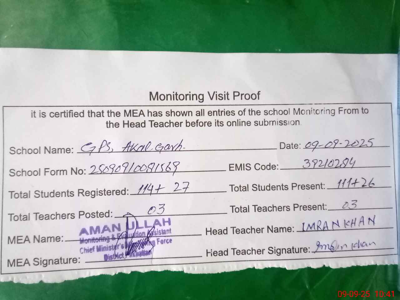 | EMIS Code: 39210284 | Name of School: GPS AKAL GARH P.O KARTAR PUR | |||
