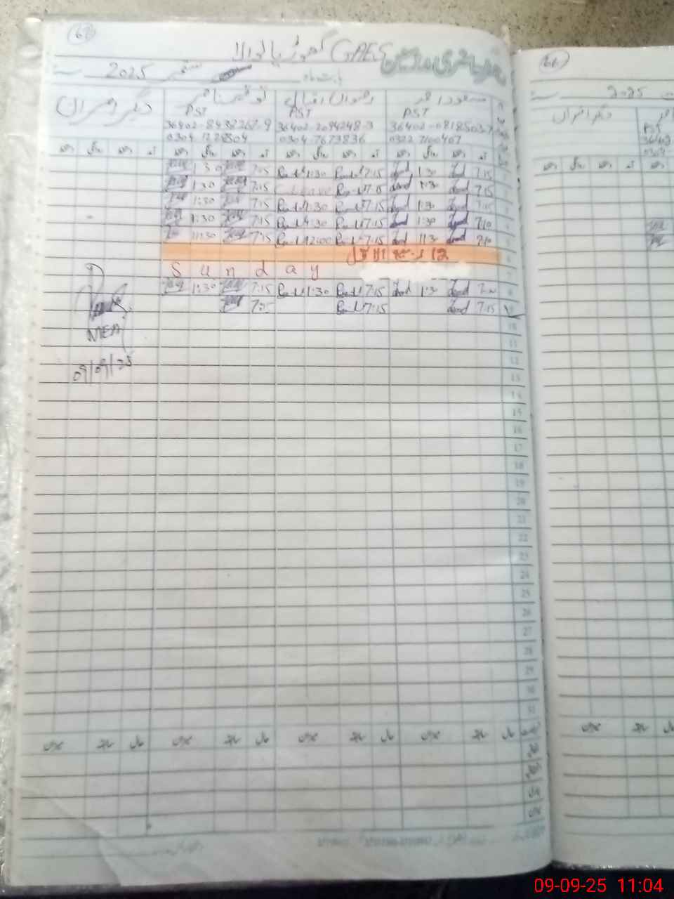 | Monitoring Date: 09-09-2025 | Start Time: 09-09-2025 10:59 AM | End Time: 09-09-2025 11:57 AM | Name of MEA: AM**** UL**** | |