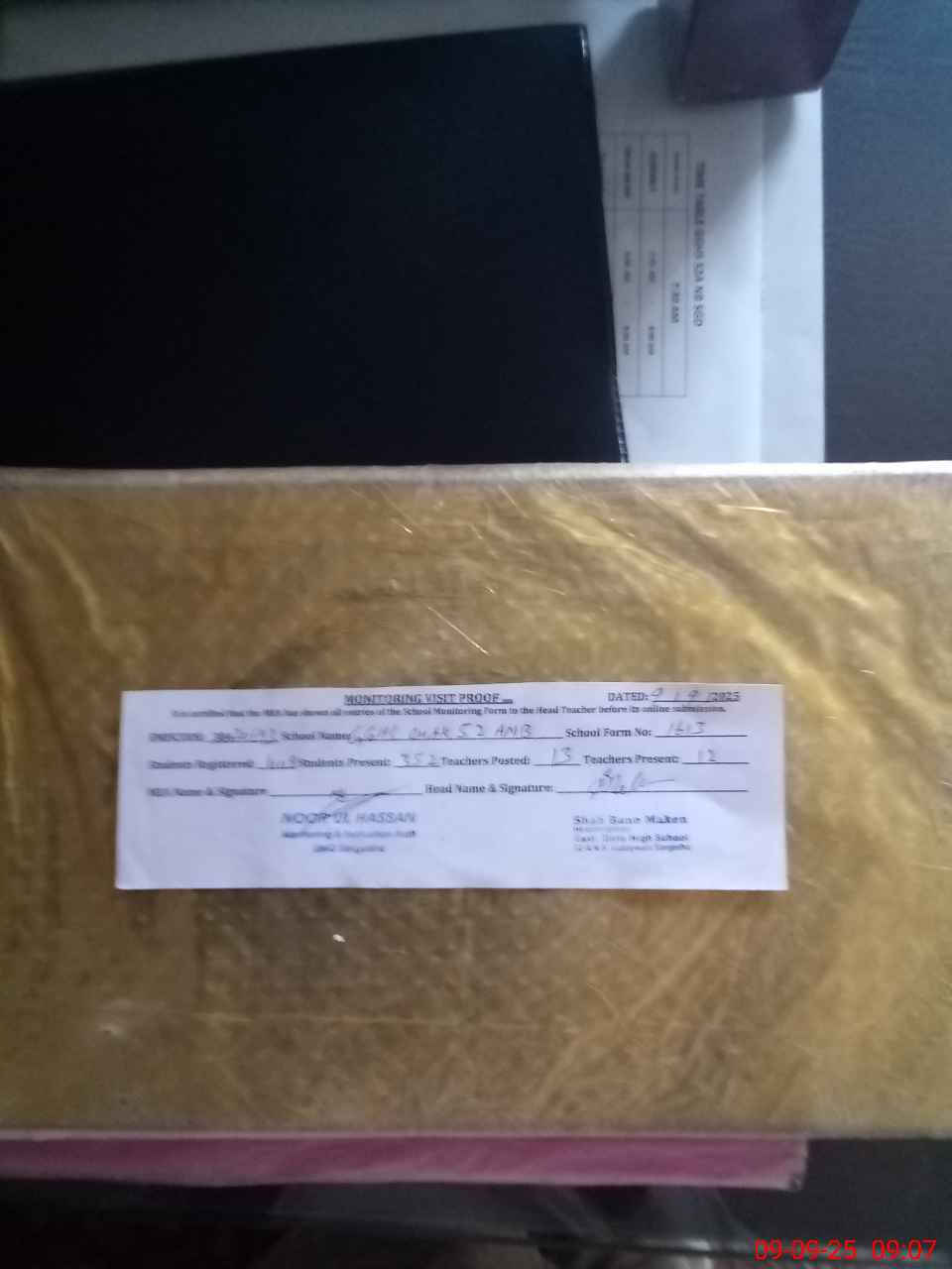 | Attendance Register | Head Teacher | MEA with School | Visit Proof |
