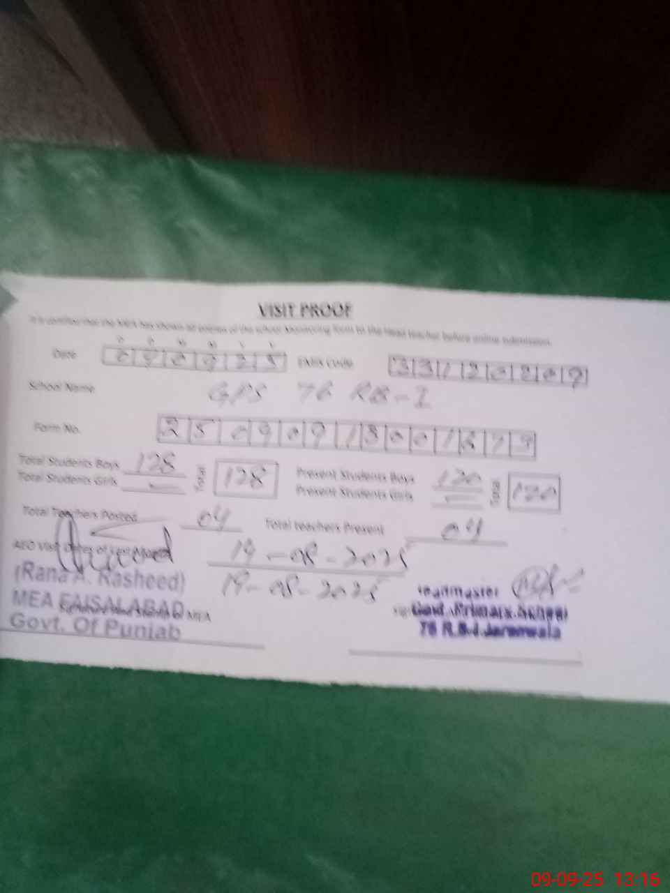 | EMIS Code: 33120209 | Name of School: GPS CHAK 76 RB I | |||