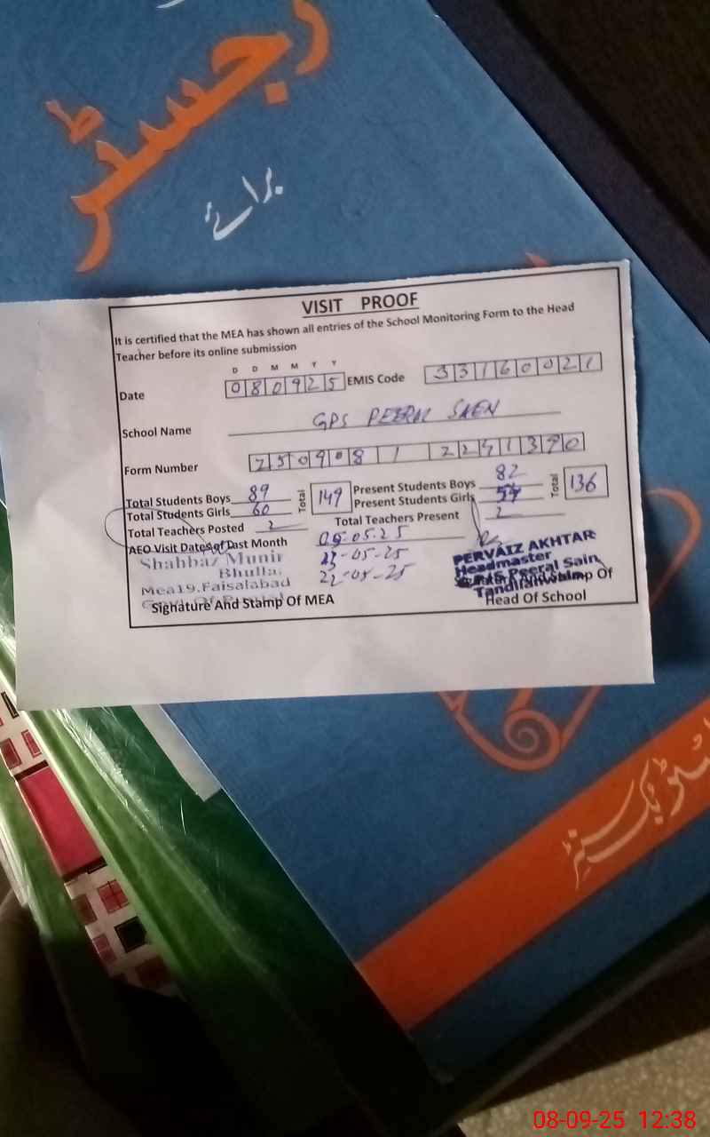 | EMIS Code: 33160021 | Name of School: GPS PEERAL SAIN | |||