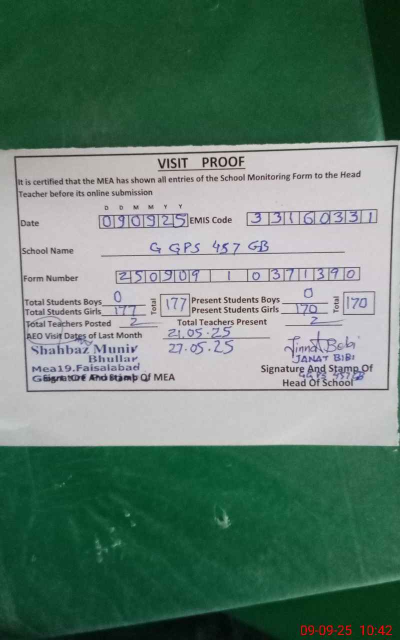 | EMIS Code: 33160331 | Name of School: GGPS 457/GB | |||