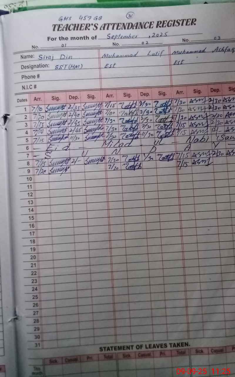 | Name: Mu**** Ja**** Designation: (School Headmaster's/Headmistress's) SST (GENERAL) Phone/Cell Number: 03**** |