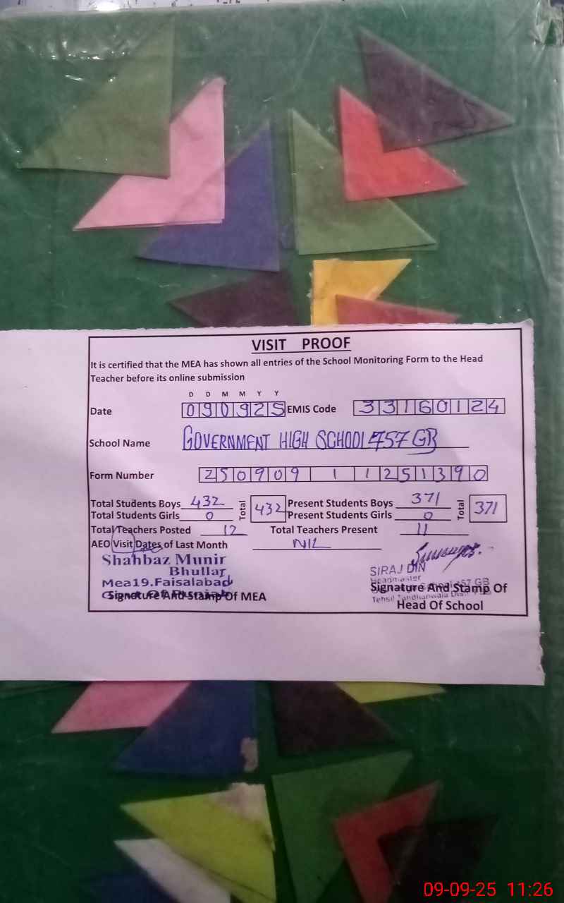 | EMIS Code: 33160124 | Name of School: GHS CHAK 457 GB I TANDLIANWALA | |||