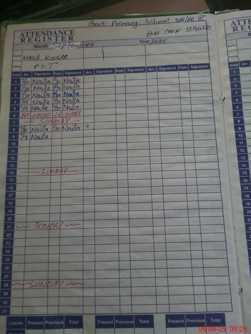 | Attendance Register | Head Teacher | MEA with School | Visit Proof |