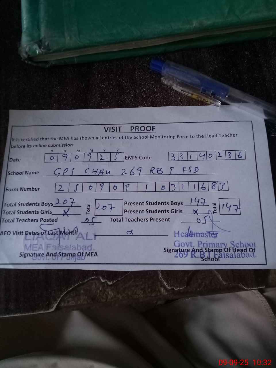 | EMIS Code: 33140236 | Name of School: GPS CHAK 269 RB I FSD | |||