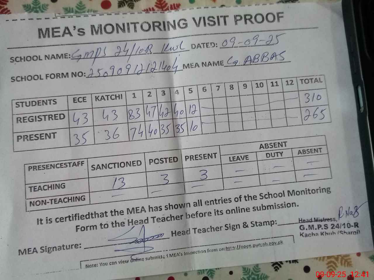 | EMIS Code: 36420441 | Name of School: GMPS 24/10-R, KACHA KHUH | |||