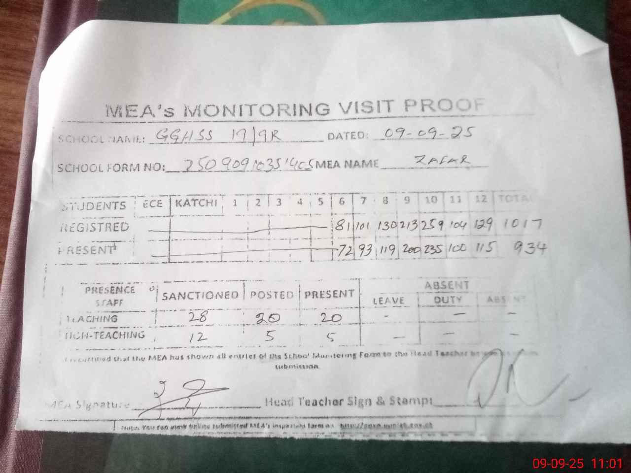 | EMIS Code: 36420054 | Name of School: GGHSS 19/9-R, KACHA KHUH | |||