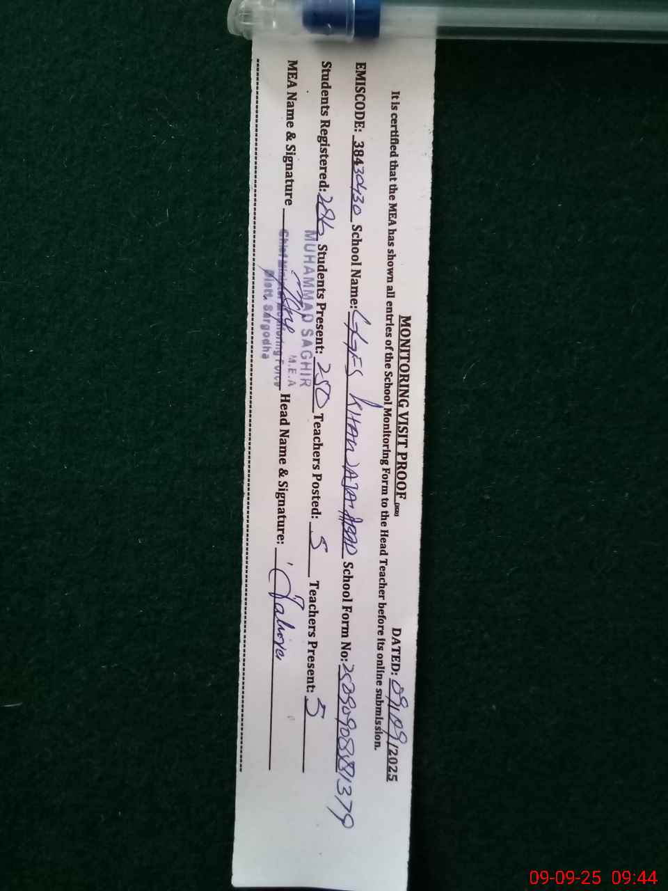 | Name: TA**** BA**** Designation: (School Headmaster's/Headmistress's) EST Phone/Cell Number: 03**** |