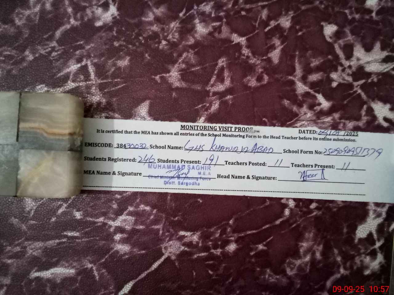 | EMIS Code: 38430032 | Name of School: GHS KHAWAJA ABAD | |||